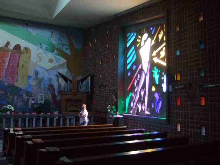 Die Kirche wird (zumindest dem ausliegenden Informationsblättchen zufolge) von Besuchern gelegentlich auch für eine „Abschussrampe“ gehalten – was auf den ersten Blick unpassend erscheinen mag, hat sowohl historischen („V1“) als auch religiösen Bezug (der Tod als definitive Rampe zur Unendlichkeit Gottes).