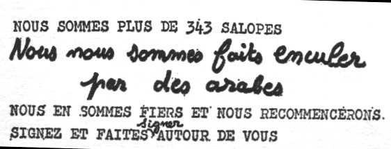 […] guère d’autres.“ (Guy Hocquenghem im Sommer 1981) (Es gibt nur eine Errungenschaft des FHAR [bedeutendste Gruppe der frz. Schwulenbewegung] die in der gegenwärtigen Schwulenbewegung Bestand […]