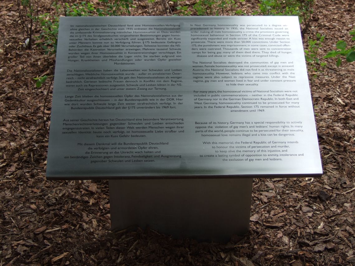 Vor wenigen Tagen ist das Denkmal für die im Nationalsozialismus verfolgten Homosexuellen eingeweiht worden. Es wird inzwischen recht gerne besucht, von Berlinern wie auch Auswärtigen.