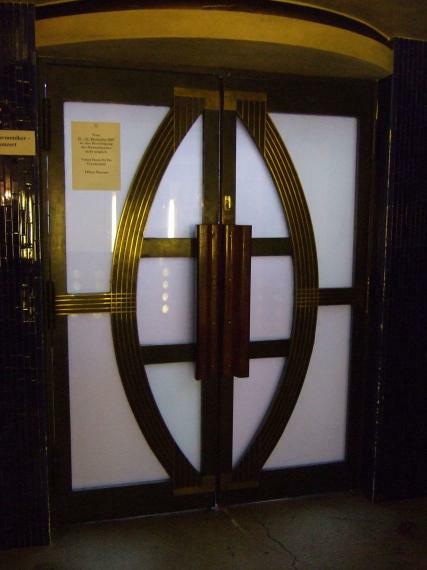 Die Fassade des Hauses Atlantis hingegen wird von vielen Besuchern nur “nebenbei” wahrgenommen – fällt sie doch aus der üblichen Optik der Böttcherstraße heraus. Ein Blick lohnt sich jedoch – die Fassade ist die letzte Arbeit von Ewald Mataré (1966 von ihm am Bau gestaltet). Sie bildet einen verdeckenden Vorhang einerseits, wohltuenden Kontrapunkt andererseits – auch angesichts der Vergangenheit des ‘Inhalts’…